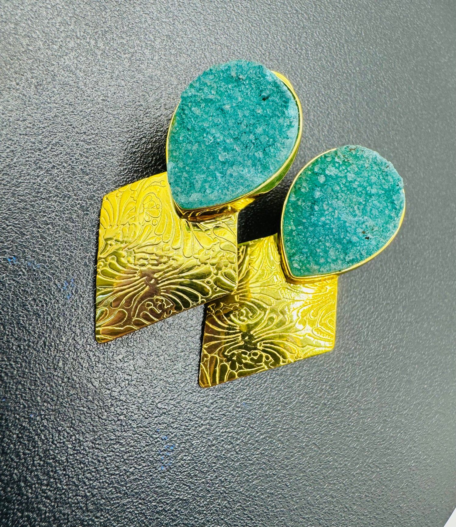 Unit price perGreen Druzy Gemstone Gold Earrings