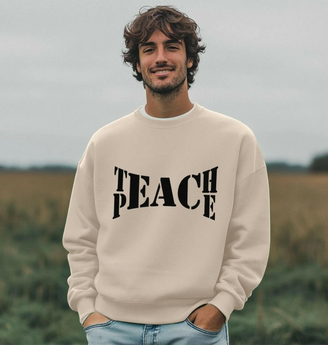 Precio unitario porThe Oversized Teach Peace Sweatshirt embodies a message of unity and mindfulness while offering unparalleled comfort. Made from 100% organic cotton, this sustainably crafted sweatshirt features a relaxed, oversized fit and breathable fabric, perfect for layering or lounging. The minimalist "Teach Peace" design inspires positivity and is complemented by eco-conscious production practices, ensuring durability and a low environmental impact.