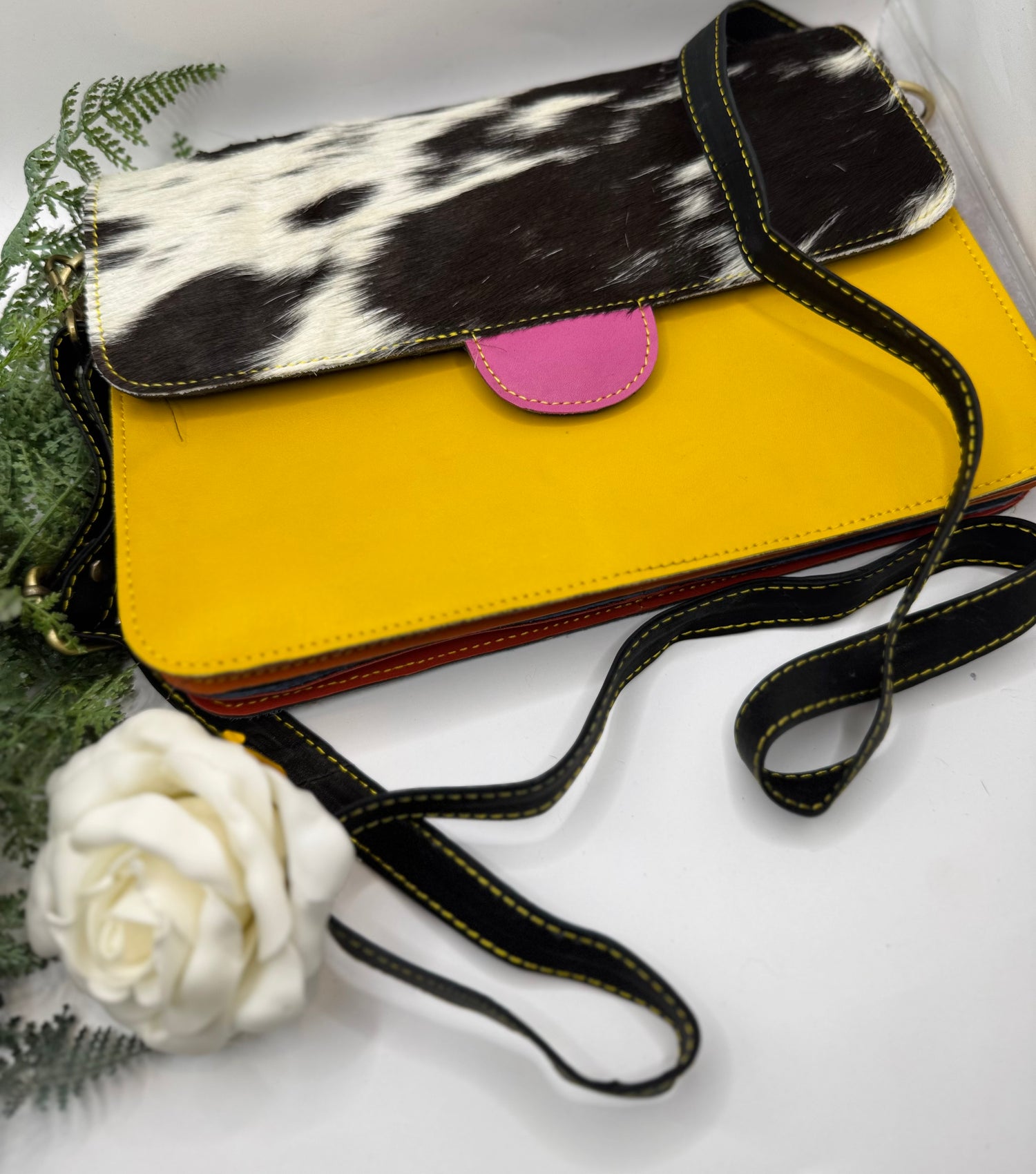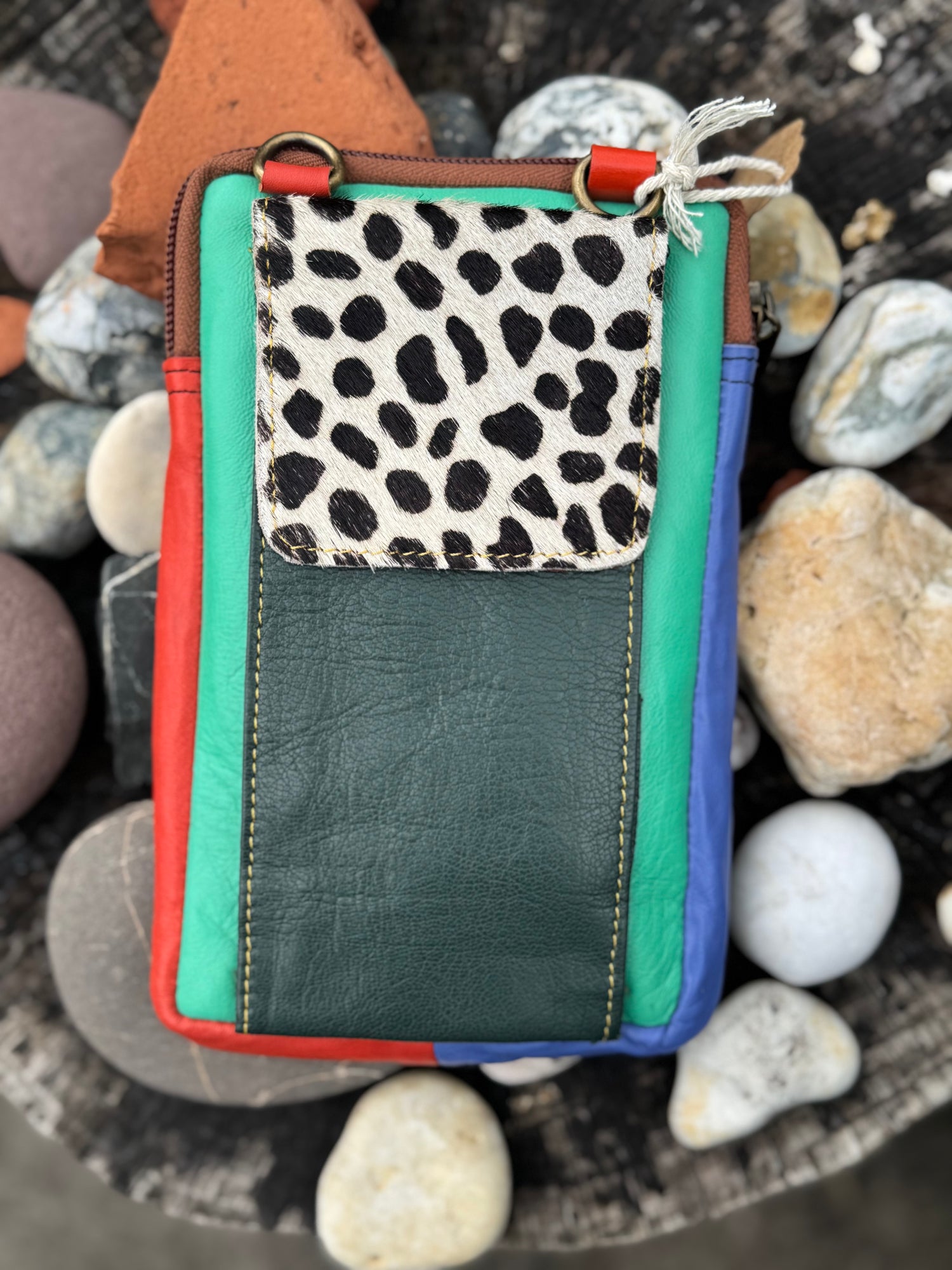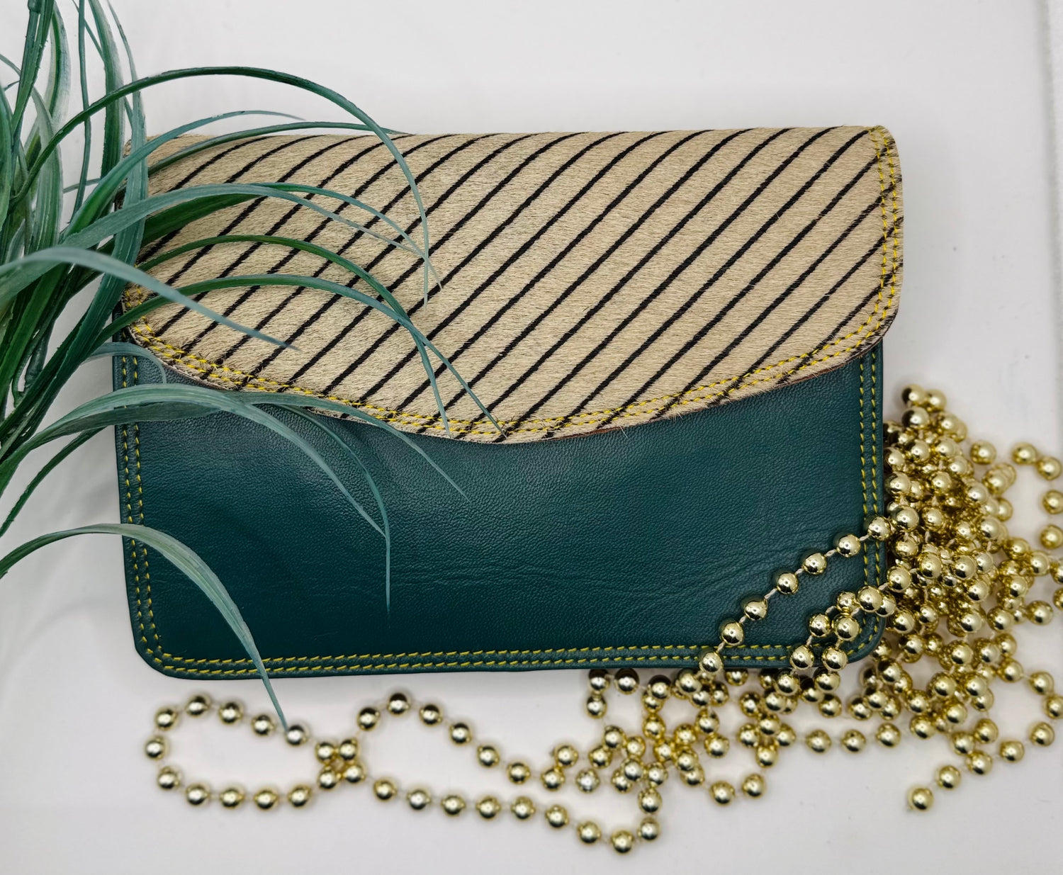 Prix unitaire parMeet the Anya Green and Yellow Purse, a beautifully designed, eco-friendly accessory crafted from high-quality upcycled leather. It features many multicolored compartments, offering plenty of space to organize your cards, cash, and small essentials.