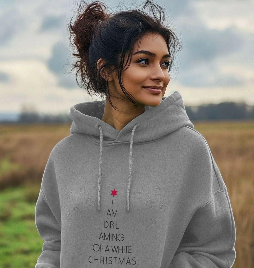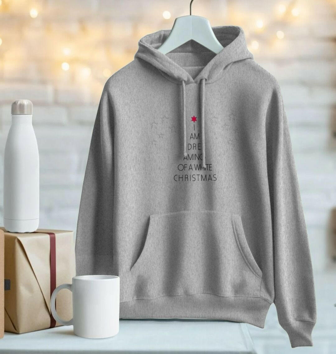 Prix unitaire parThe "I'm Dreaming of a White Christmas" Unisex Hoodie is made from 100% organic cotton, offering a soft, cozy feel perfect for the holiday season. This eco-friendly hoodie features the classic "I'm Dreaming of a White Christmas" slogan, bringing a nostalgic, festive vibe to your winter wardrobe. Crafted in a relaxed, unisex fit, it includes a spacious hood with adjustable drawstrings and a front kangaroo pocket for added warmth and convenience.