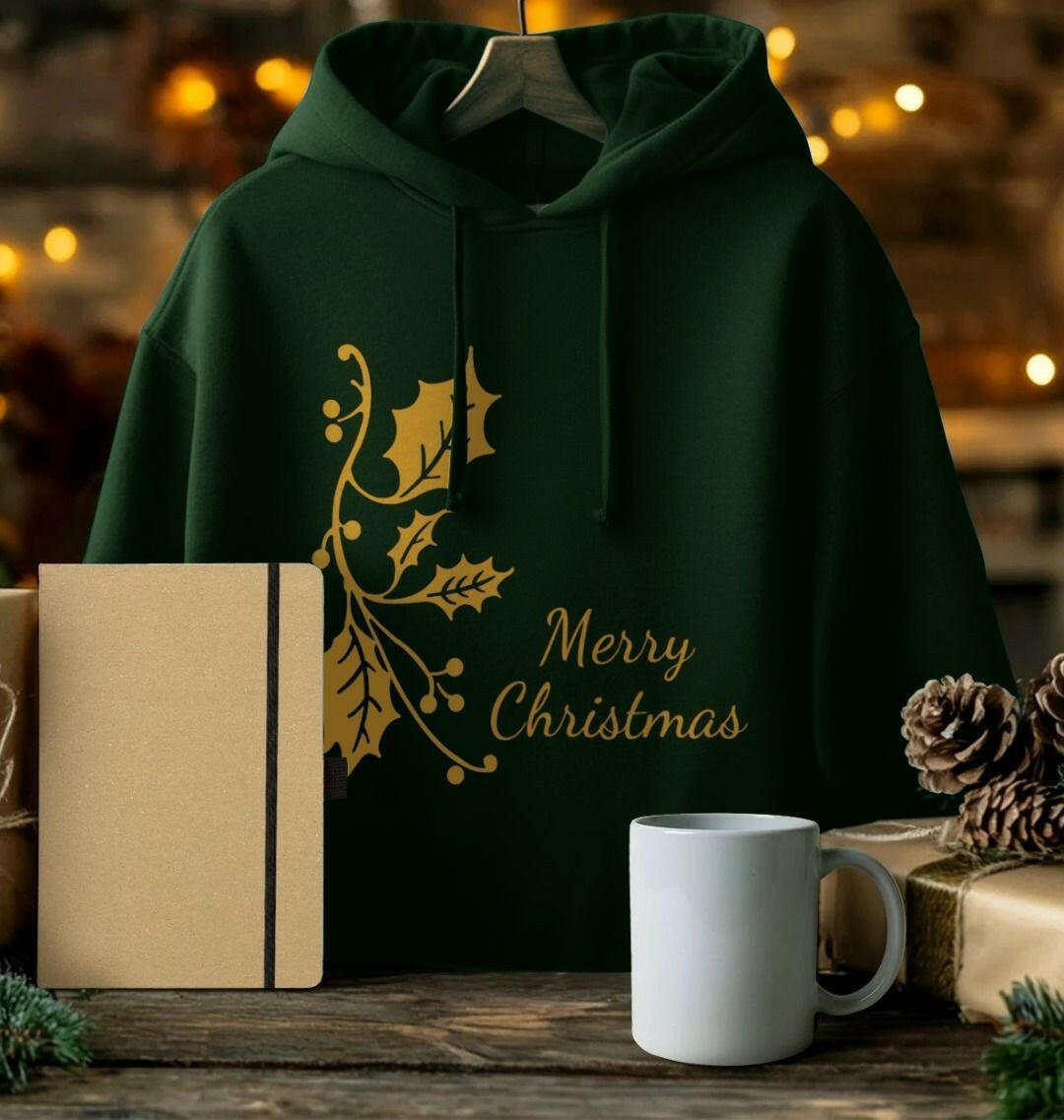 Prix unitaire parThe Merry Christmas Unisex Hoodie is crafted from 100% organic cotton, offering a soft, breathable, and eco-friendly feel that's perfect for cozy winter wear. Designed to suit all genders, this hoodie combines comfort and festive style. The fabric has a natural, durable quality, giving it a slightly thicker feel while remaining soft against the skin. Featuring a festive "Merry Christmas" design, it comes in a relaxed, unisex fit, with a spacious hood, adjustable drawstrings, and a front kangaroo pocket for added warmth and convenience. This hoodie is a sustainable choice for celebrating the holidays in style!
