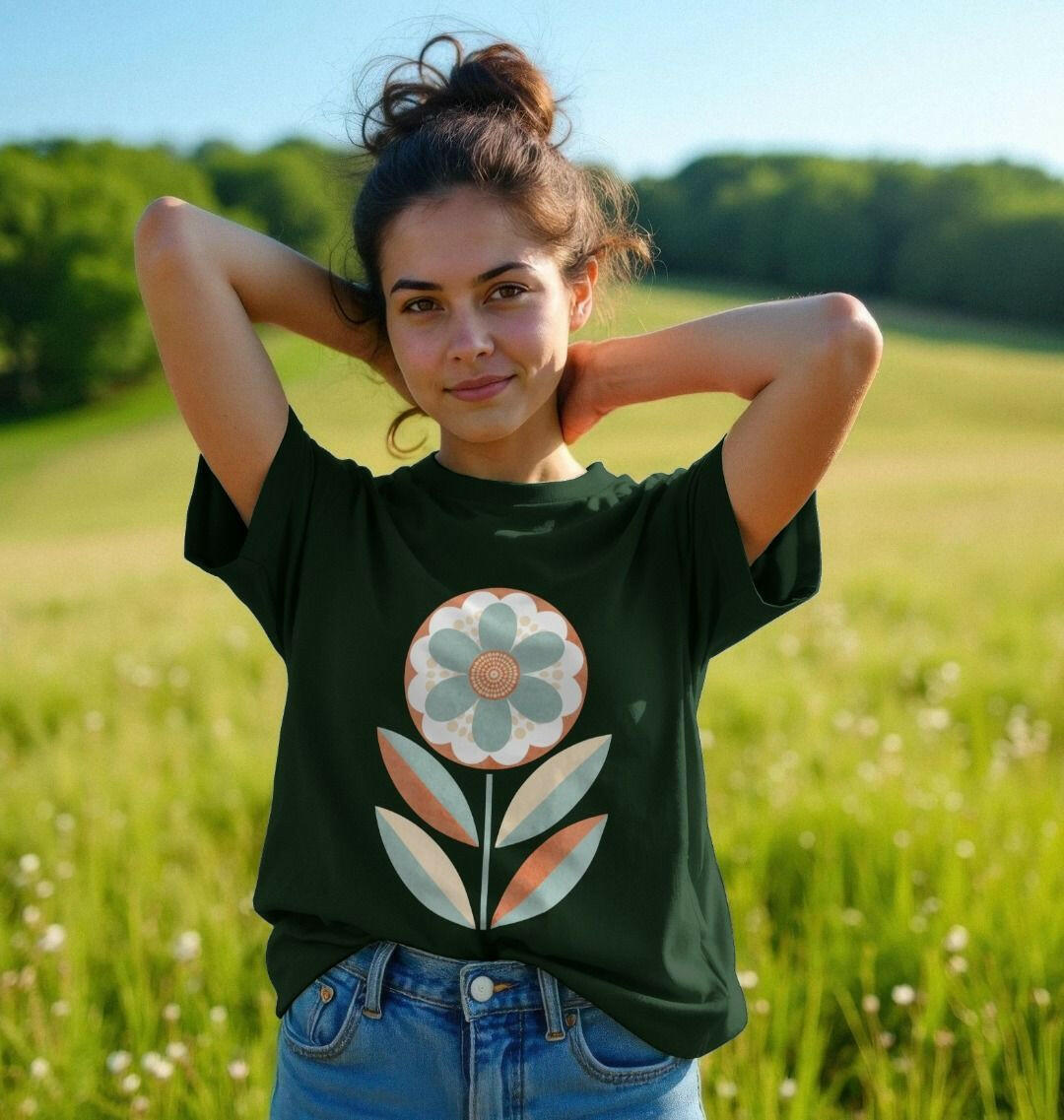 Channel your inner free spirit with the Flower Power Tee – a festival favorite bursting with good vibes. Crafted from 100% organic cotton, this tee offers soft, breathable comfort with a relaxed fit made for dancing in the sunshine. Featuring a bold floral graphic with a retro twist, it’s the perfect blend of vintage charm and modern sustainability.