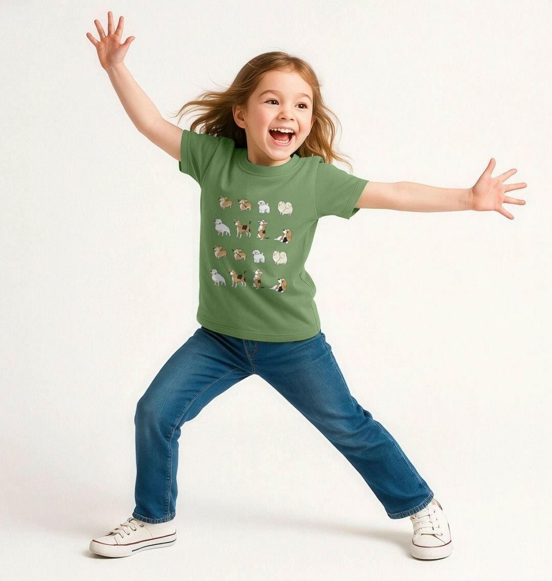 This adorable Dogs Tee is made from super-soft, breathable 100% organic cotton—perfect for everyday adventures, park playdates, or cozy cuddle time. Featuring a fun and friendly dog print, it's designed to keep kids comfy and smiling all day long.