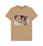 Certified Organic Cotton t-shirt, 155g/m2. Wash cool, hang dry. GM free. Not tested on animals. Does not contain animal-derived products. Printed with low waste printing tech. Made in a renewable energy powered factory audited for a wide range of social and sustainability criteria.